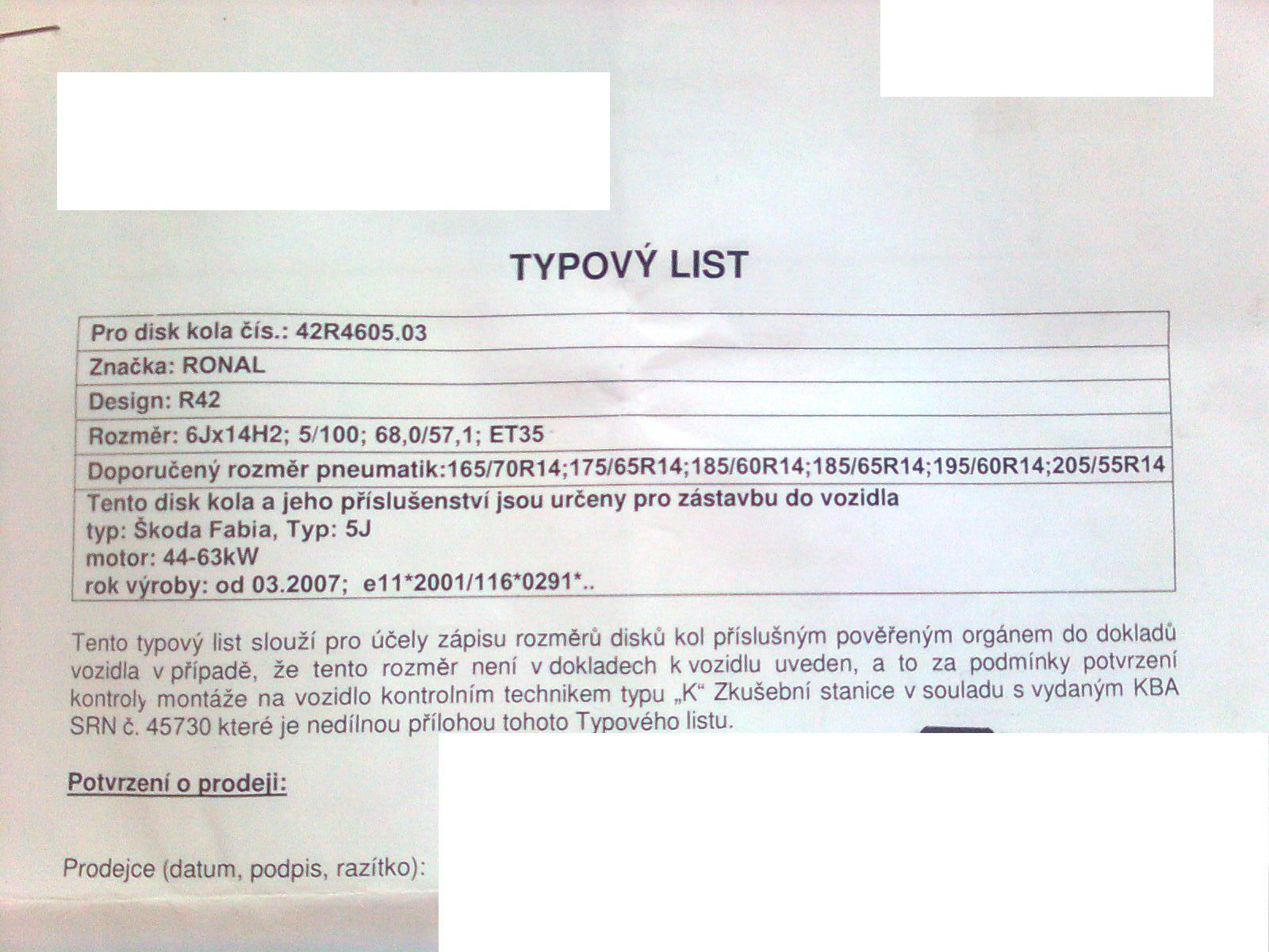 Ve výsledku je to docela logické, že je tam zapsaný ten daný typ disku, protože typový list byl vydaný právě k těmto diskům. Každopádně je to nesmysl a pokud designově jiný disk splní požadované technické parametry (RONAL R42 je sice dobrý, ale to je prostě designová záležitost, to nemá co dělat s funkcí). Kdyby došlo na nejhorší, tak žádný znalec nemůže říct, že design způsobil nehodu...