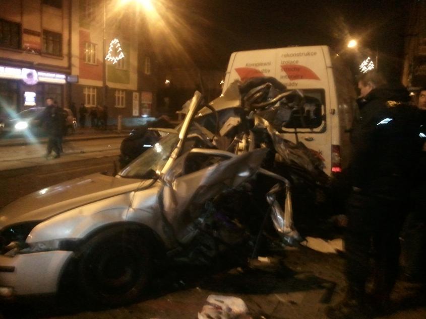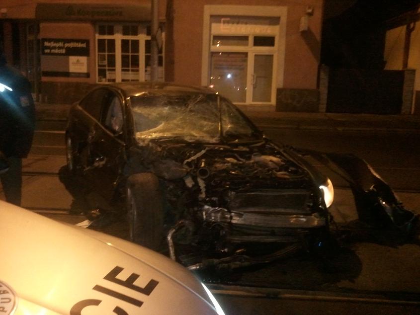 A6 trefila cca ve 15O ostrůvek tramvaje, hodilo ji to do stojícího mondea, mondeo odletělo do stojícího transita.