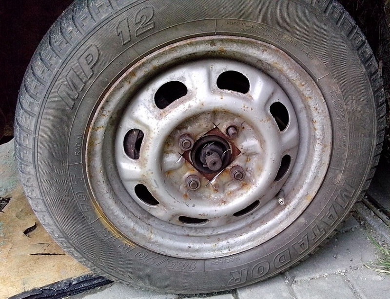 auto uz je u karosare(blatnik se oprel o gumu, takze nepojizdne aspon do doby nez to nafoti likvidator aby se mohl blatnik vytahnout zpatky ven)