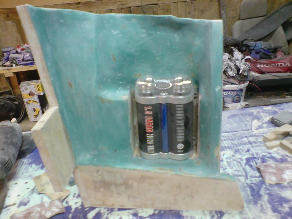 kaplicka pro budiky na sloupek u ridice a temer finalni rozmisteni zastavby v kufru...