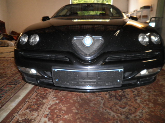 Moje auto bylo rok výroby 2002 a mělo najeto cca 105 000 km, poslední prohlídka byla dle servisky v 90 000 km, takže počáteční investice byla jasná. Ale s tím jsem počítal. Takže po příjezdu do nového domova šlo auto na dílnu. Proběhla výměna rozvodového řemenu včetně kladek a vodní pumpy, nové svíčky, termostat, přední ramena, manžety poloos zadní osa dostala kulové čepy + silentbloky Powerflex. Vzhledem k tomu, že auto stálo pravděpodobně delší dobu venku, vyměnili se všechny zpuchřelé hadičky, zkorodované podvozkové díly (na některé ještě dojde řada - všechno nejde hned), prostřední tlumič výfuku (byl už před smrtí, tak jsem objednal nerezový díl Ragazzon v limitované edici Alfisti.net, který měl pouze takový "minitlumič") a dokonce i tepelná izolace na motorové stěně (hrozný opruz - musela dolů nápravnice, vypustit klimu atd.). Vzhledem ke světlé výšce auta byla také malinko pomuchlaná chladičová příčka, kterou jsem koupil novou a nechal ji nalakovat do černé barvy. Dále se vyměnila plastová mřížka v předním nárazníku ,která byla rozlámaná pravděpodobně od nějakého kamene atd atd. Samozřejmostí byla také výměna oleje Selénia Racing 10W 60, výměna všech filtrů, nové naplnění klimy atd. Některé díly jsem měnit ani nemusel, ale chtěl jsem to auto mít ve 100% stavu, takže to co bylo poškozené nebo "spotřebák" se prostě vyměnilo. Na autě bylo potřeba ještě vyměnit zadní pružiny a kotouče, ale k tomu se dostanemu později.