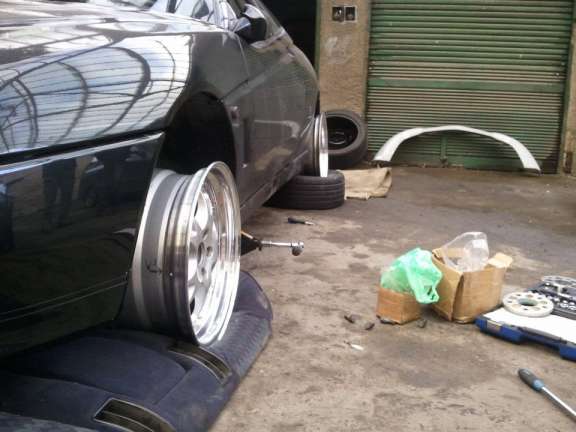 Po servisu jsem se začal věnovat změnám a auto si upravit k "obrazu svému" i když na tomhle autě dle mého názoru není moc co upravovat... Jako první přišly na řadu kola - původní Engstlery šli pryč a místo nich putovaly na auto dvoudílné šroubované RH ZW3 v rozměru 8,5x18. Kvůli předním brzdám jsem trochu laboroval s ET, ale nakonec se zadařilo.