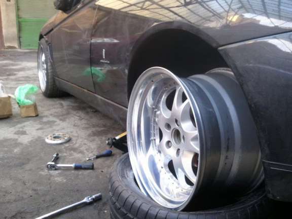 Po servisu jsem se začal věnovat změnám a auto si upravit k "obrazu svému" i když na tomhle autě dle mého názoru není moc co upravovat... Jako první přišly na řadu kola - původní Engstlery šli pryč a místo nich putovaly na auto dvoudílné šroubované RH ZW3 v rozměru 8,5x18. Kvůli předním brzdám jsem trochu laboroval s ET, ale nakonec se zadařilo.