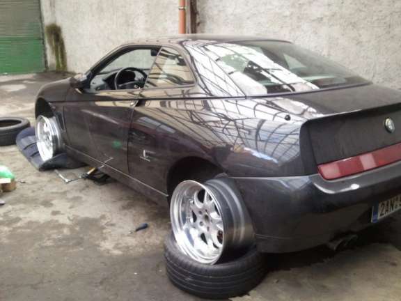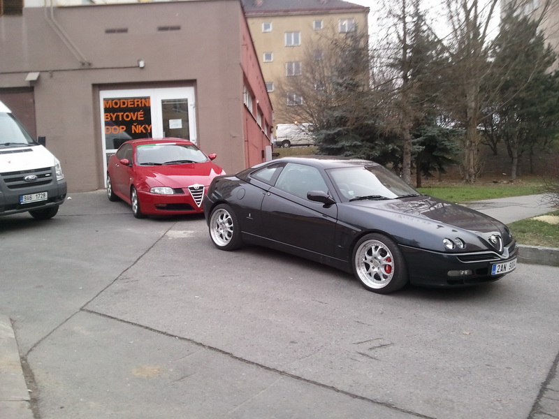 Moje auto bylo rok výroby 2002 a mělo najeto cca 105 000 km, poslední prohlídka byla dle servisky v 90 000 km, takže počáteční investice byla jasná. Ale s tím jsem počítal. Takže po příjezdu do nového domova šlo auto na dílnu. Proběhla výměna rozvodového řemenu včetně kladek a vodní pumpy, nové svíčky, termostat, přední ramena, manžety poloos zadní osa dostala kulové čepy + silentbloky Powerflex. Vzhledem k tomu, že auto stálo pravděpodobně delší dobu venku, vyměnili se všechny zpuchřelé hadičky, zkorodované podvozkové díly (na některé ještě dojde řada - všechno nejde hned), prostřední tlumič výfuku (byl už před smrtí, tak jsem objednal nerezový díl Ragazzon v limitované edici Alfisti.net, který měl pouze takový "minitlumič") a dokonce i tepelná izolace na motorové stěně (hrozný opruz - musela dolů nápravnice, vypustit klimu atd.). Vzhledem ke světlé výšce auta byla také malinko pomuchlaná chladičová příčka, kterou jsem koupil novou a nechal ji nalakovat do černé barvy. Dále se vyměnila plastová mřížka v předním nárazníku ,která byla rozlámaná pravděpodobně od nějakého kamene atd atd. Samozřejmostí byla také výměna oleje Selénia Racing 10W 60, výměna všech filtrů, nové naplnění klimy atd. Některé díly jsem měnit ani nemusel, ale chtěl jsem to auto mít ve 100% stavu, takže to co bylo poškozené nebo "spotřebák" se prostě vyměnilo. Na autě bylo potřeba ještě vyměnit zadní pružiny a kotouče, ale k tomu se dostanemu později.