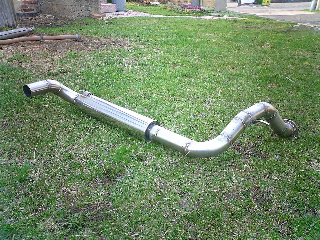 Jelikož sem měl dneska dovolenou a venku bylo nádherně, tak mi to nedalo a pustil sem se do výfuku sám. Strávil sem na tom sice skoro 10 hodin, protože neustálý lezení pod auto dost zdržovalo, ale výfuk je hotový. Ještě o víkendu zbouchu downpipe a budu moc k Montymu na finální odladění ECU.