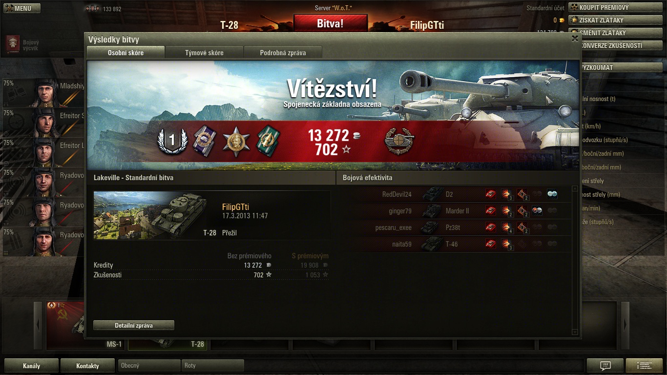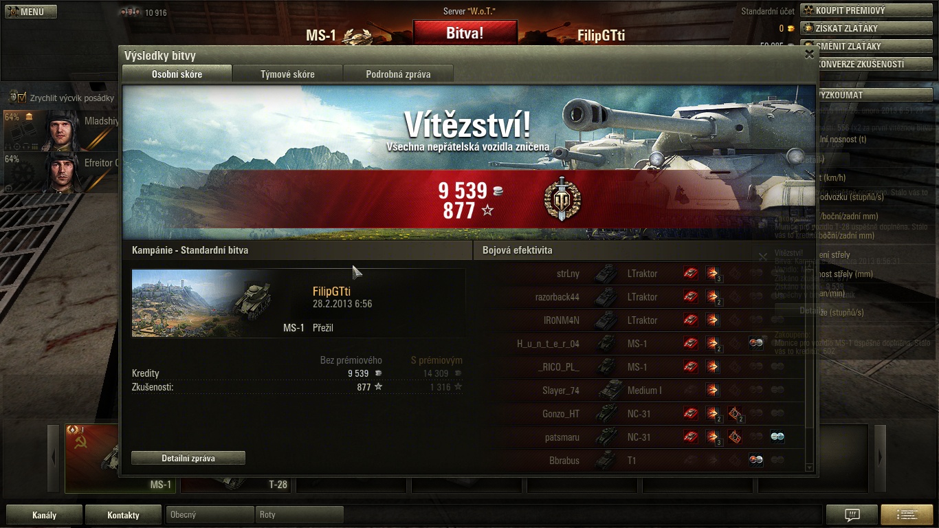 Nehorázně hbitý tank, hned jsem ho dostal do ruky, toto je screen z 28. bitvy