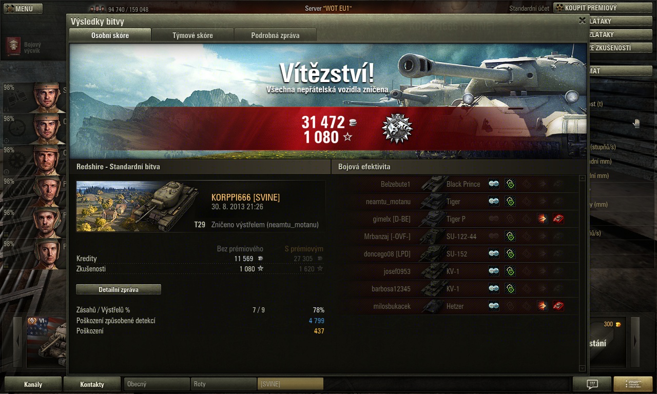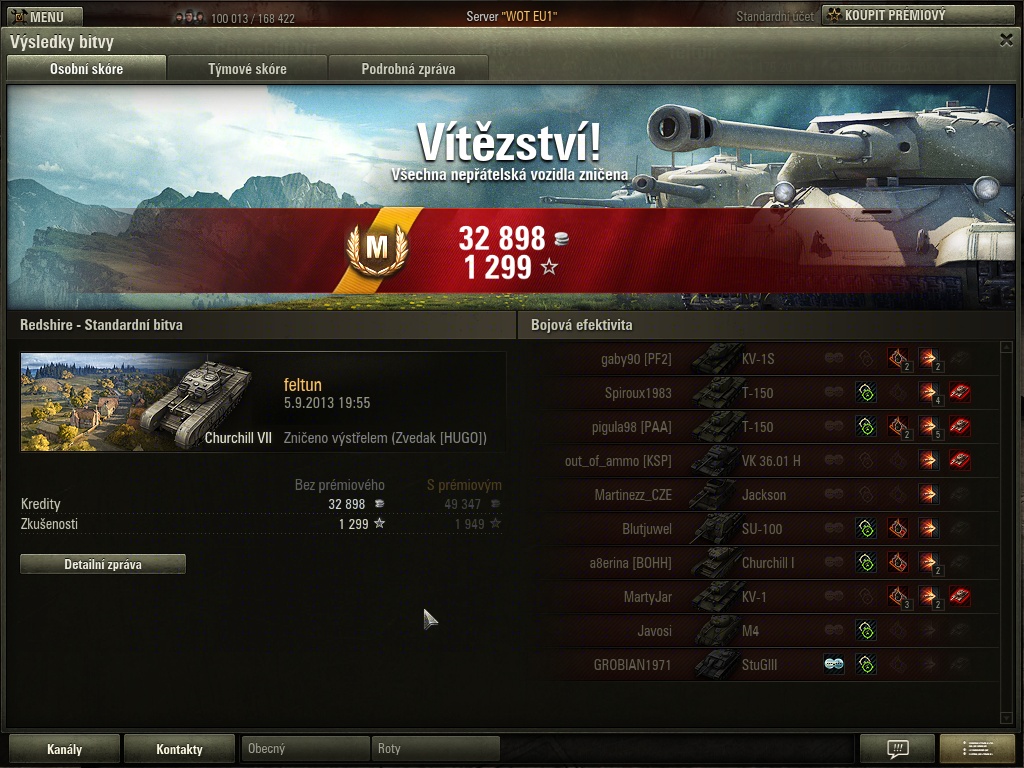 No nic zapamatoval jsem si nick poslal zprávu, že je stupidní idiot a nahlásil za střílení po vlastních. Asi z toho mít nic nebude, ale mě bylo dobře.