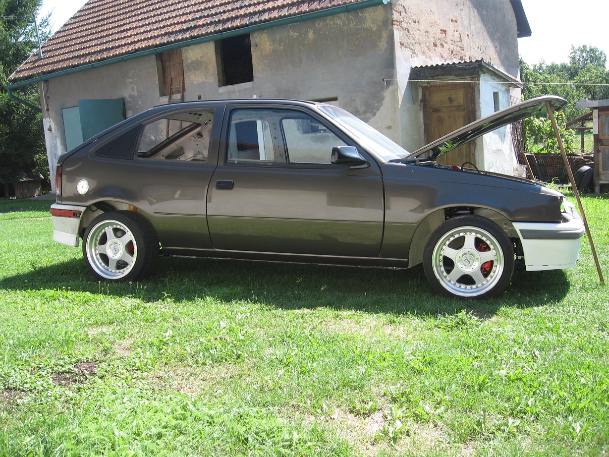 Musíme se vrátit o notný kus zpět. Psal se rok 2005 a já si vezl domů svého prvního Kadetta e 1,4i červené barvy s rozšířením Zender. První etapa spočívala v nástřiku modré barvy a napasování extrémních tuning spojlerů, včetně mega křídla z Fordu a kol Keskin KT1 9x16 et15. Byl jsem mladý a nerozvážný, ale musím uznat, že se mi to líbilo. Čas šel dál a chtěl jsem nahradit nárazníky. Nakonec jsem vybral nárazníky z Astry f gsi, které jsem musel rozšířit. Poté přišel na řadu motor, moc jsem chtěl c20xe. Nic jiného mi nezbylo, než koupit Kadeta e gsi 16v, kterého jsem použil jako dárce orgánů :kladivo: . Co se týče interieru, koupil jsem sedačky z verze Champion a nechal je očalounit do červeno-černé kůže a k tomu volant Momo. Motor jsem malinko zušlechtil :savle: