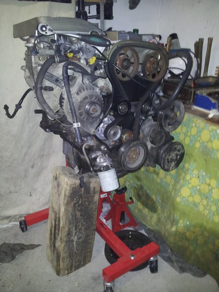 Tak jsme se nenechali odradit a sehnali s bráchou po delší době plnohodnotnej motor C20LET a to z jedné ekolikvidačky. Dárce byla Calibra trefená na předek takže to odneslo jen servo a klimakompresor. Jedná se o motor z roku 1995 tudíž už má novější systém rozvodů a pár jiných drobností. Potěšující bylo, že motor měl hlavu Coscast.(ale jak psal Martty v opel sekci myslím že tahle věc je zveličená s tím praskáním hlav Kolben schmidt) Jakmile jsme pacholka dotáhli do garáže hned jsme ho šoupli na osvědčenej stojánek od firmy Holzinger