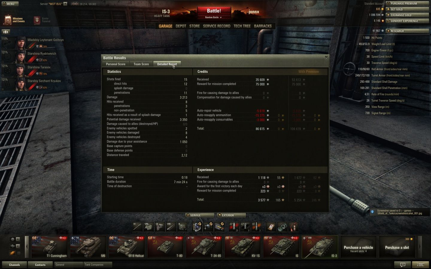luchs vs. T32 s goldem - velkej ding a luchs si pokračoval vesele dál a já dostal dáreček od arty za 1200