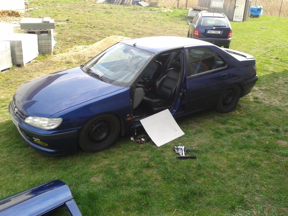 Složen interiér ( tapecíry, a černej spodek palubovky z coupe 406 )
