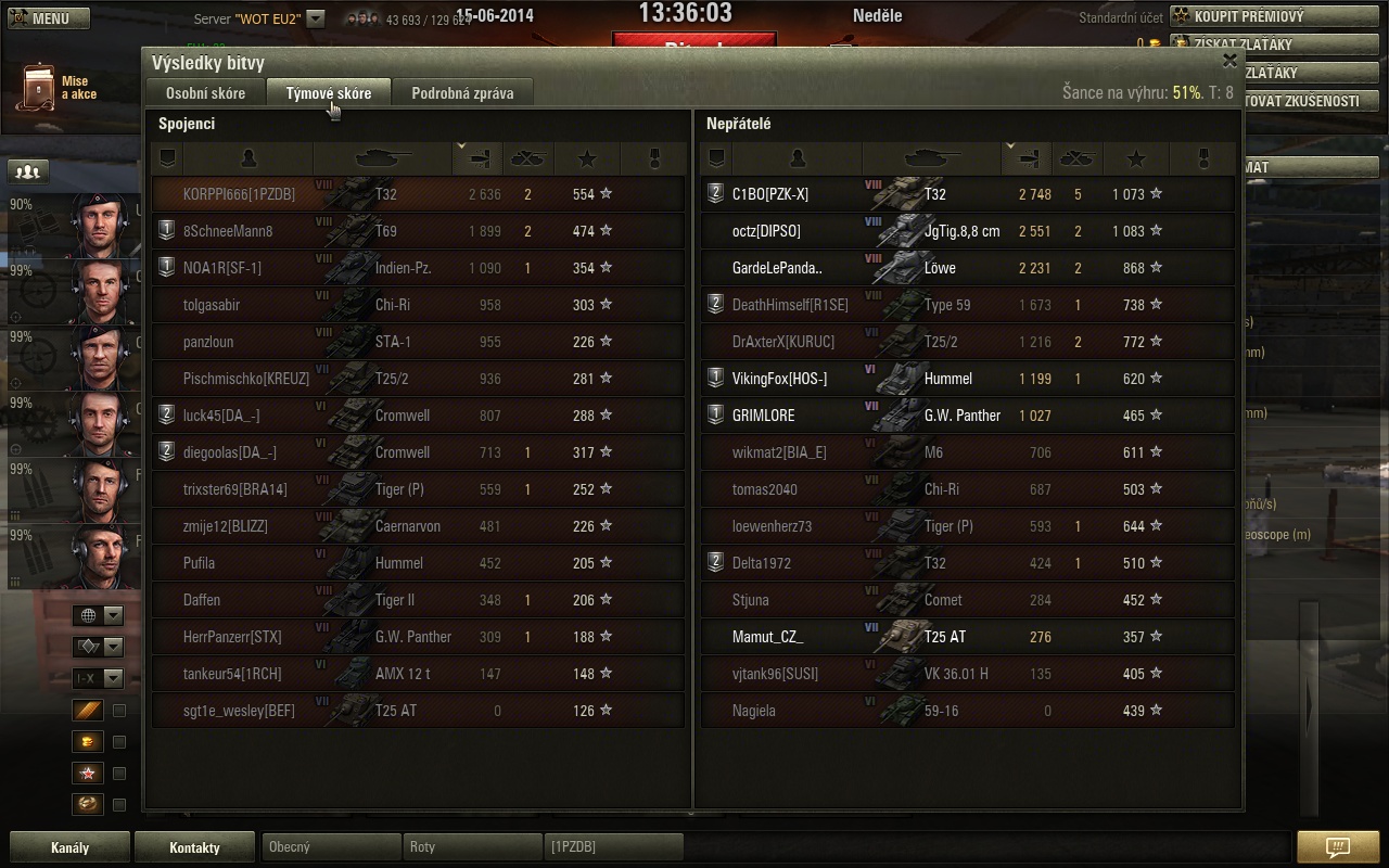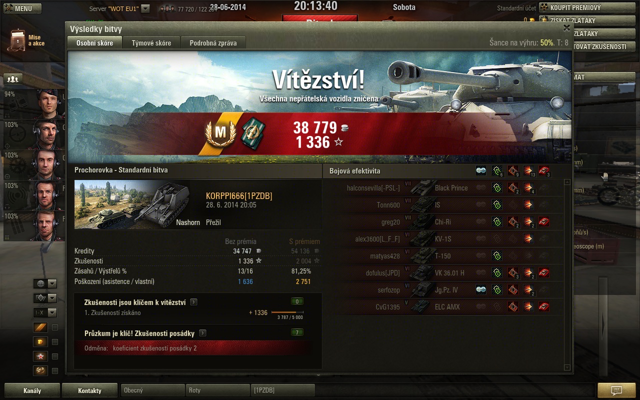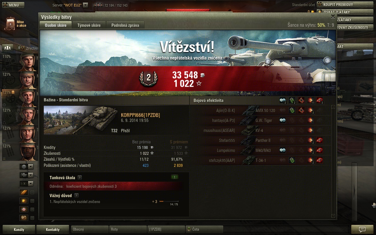 Jedna epic bitva s Ferdou, ten tank mě neskutečně baví :lol: průměrná dmg 450-550 hp a nabíjí co 10 sekund.