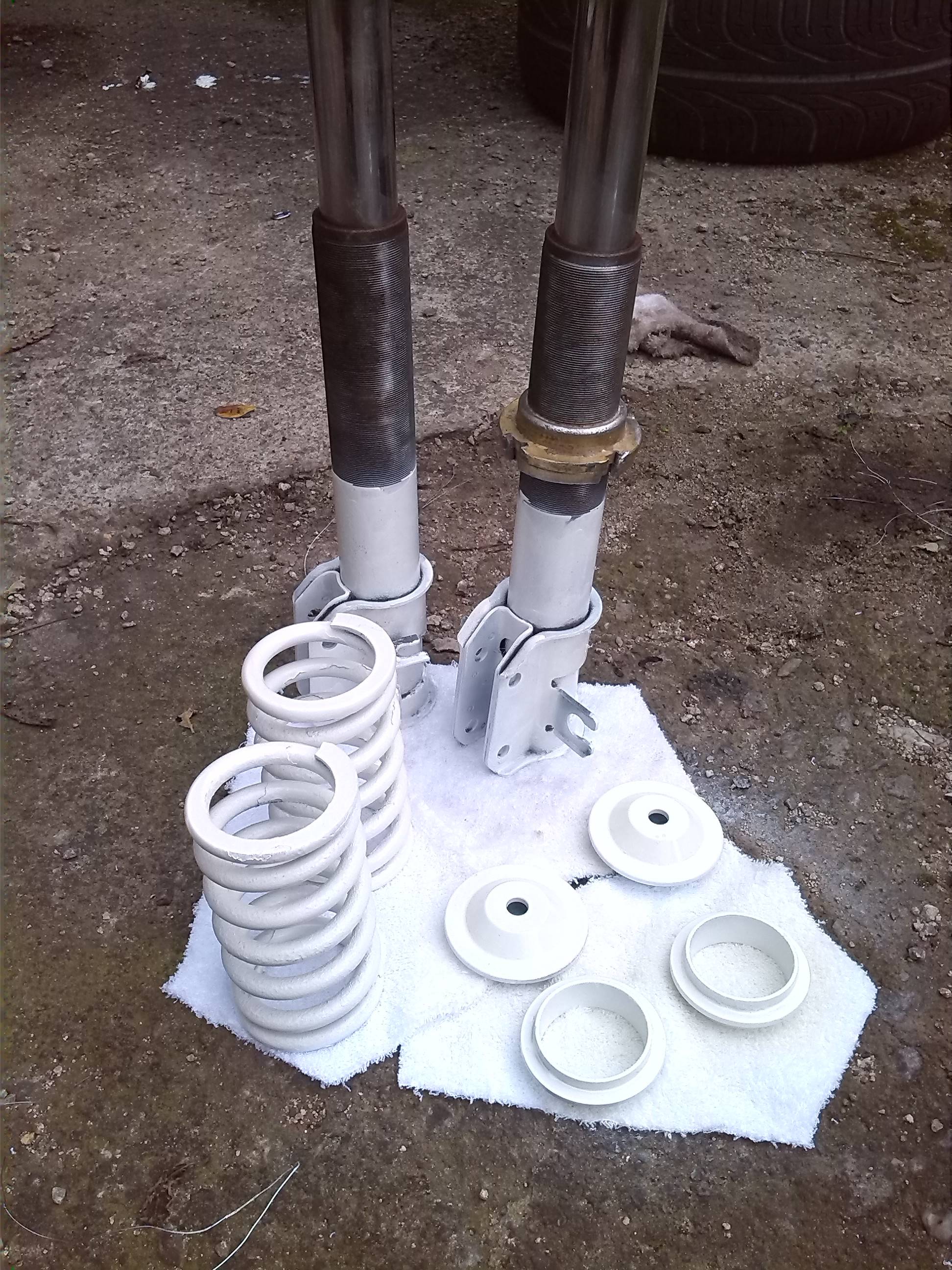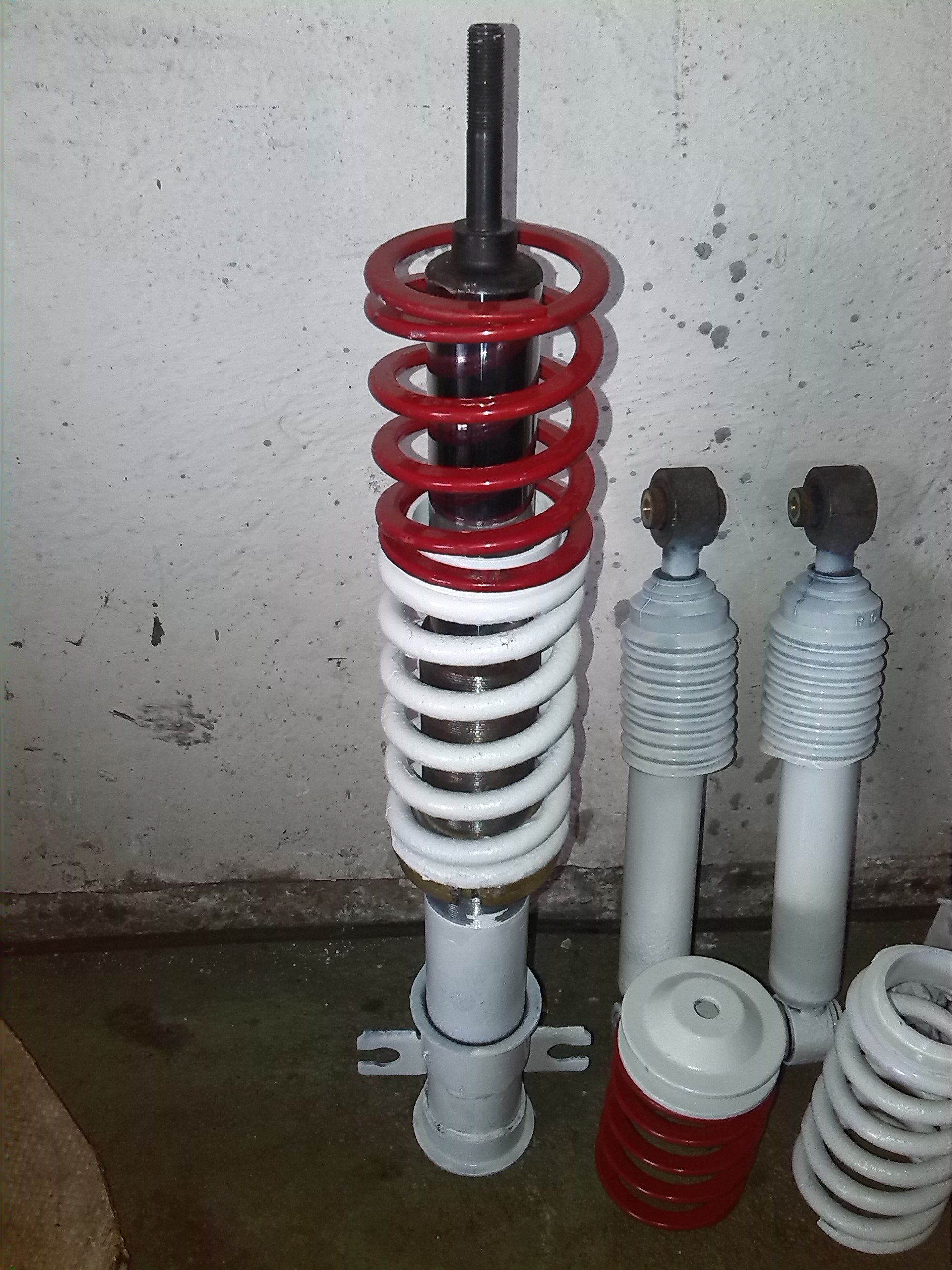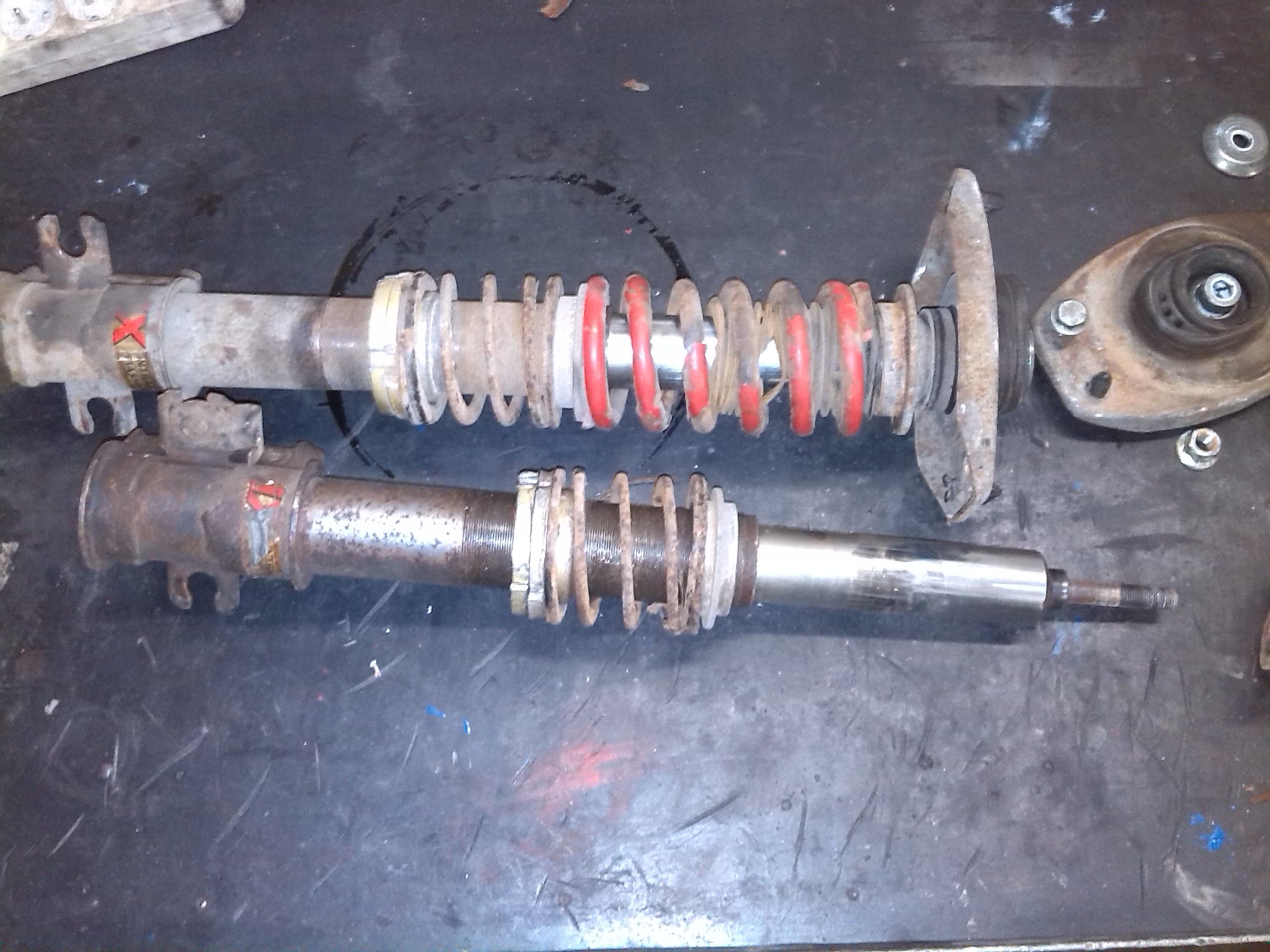 S leštěním kol jsem si fakt nasral na ruce, když to dělám o volném času všechno růčo. Zatím jen brousím...brousím...a zbavuji se detailů, ale o tom až časem. Podvozek je vlastně původně z Punta mkI...netušili jsme zda ho tam dostaneme, spodní uchycení je ale na chlup stejný, horní uložení se prohodilo ze série a padlo to jako prdel na hlavu!