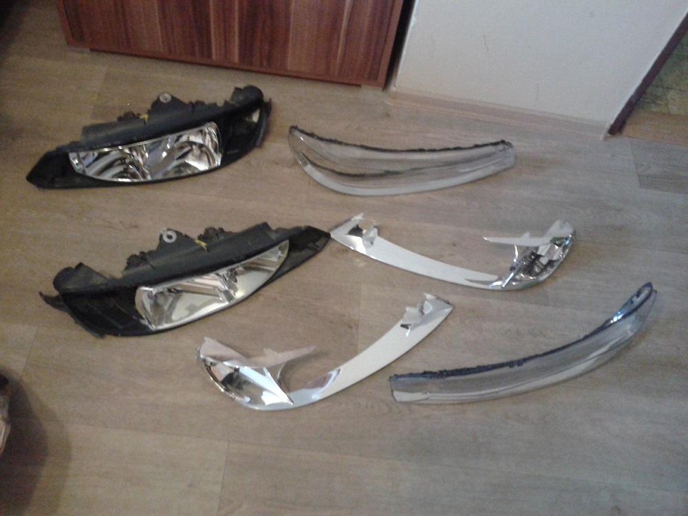 Tak abych to tu trochu oživil. Proběhl nějakej servis jakio vyměna oleje + filtru vyměna svíček atd. Potom jsem si přivezl věci od čalouníka a rozebral předek auta světla a mlhovky se rozeberou a rámeček se nastříká do černa. Maska se stříkne do černé matné stejně jako mřížka nárazníku. A potom se spojí lišty v předním nárazníku do jedné dlouhé a tím zmizí místo pro spz ta se bude vozit na rámečku.