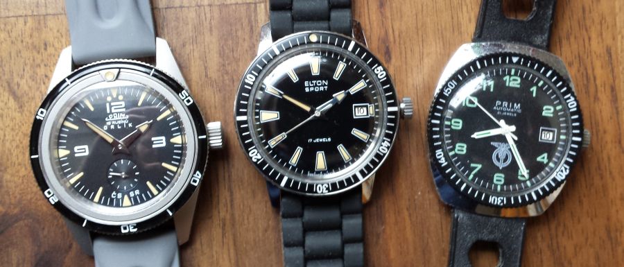 1968 vojenské potápěčské Elton Sport (replika 2014 - v r. 1968 Prim zvažoval změnu jména na Elton - ELektrický TÓN - ladičkové hodinky, předchůdce quatrtz)