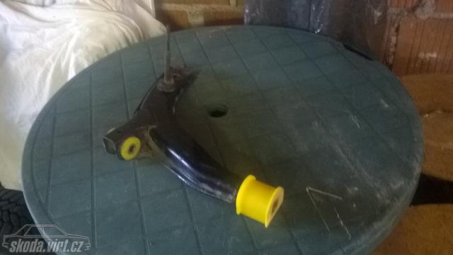 Tak jsem navýšil zásobu poloos, a snad přišel na to proč začali tak rychle mizet - totálně odkouřenej silentblok ramene a tím rozbíhavost 8-9mm - odpověď na vzniklou situaci je na obrázku:) - s takto předělanýma silentblokama mám odjetej závod v Mejtě kde jsem ve skupině do 1400ccm obsadil druhý místo za perfektně připravenym suzuki swift Gti a s vybojovaným časem teoreticky vyhrál dvoulitry což mi udělalo velikou radost- startoval jsem tam poprvé tak tim spíš mě to potěšilo.