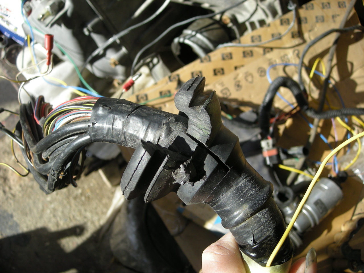 Vycviknut draty od konektora na pravej strane kabelaze ECU, pretiahnut / vytiahnut si ich z toho zvezku na lavu stranu, kde ich je treba, kde by bohate stacila ich dlzka a dali by sa krasne napojit na bateriu a konektor X6 v kabine,