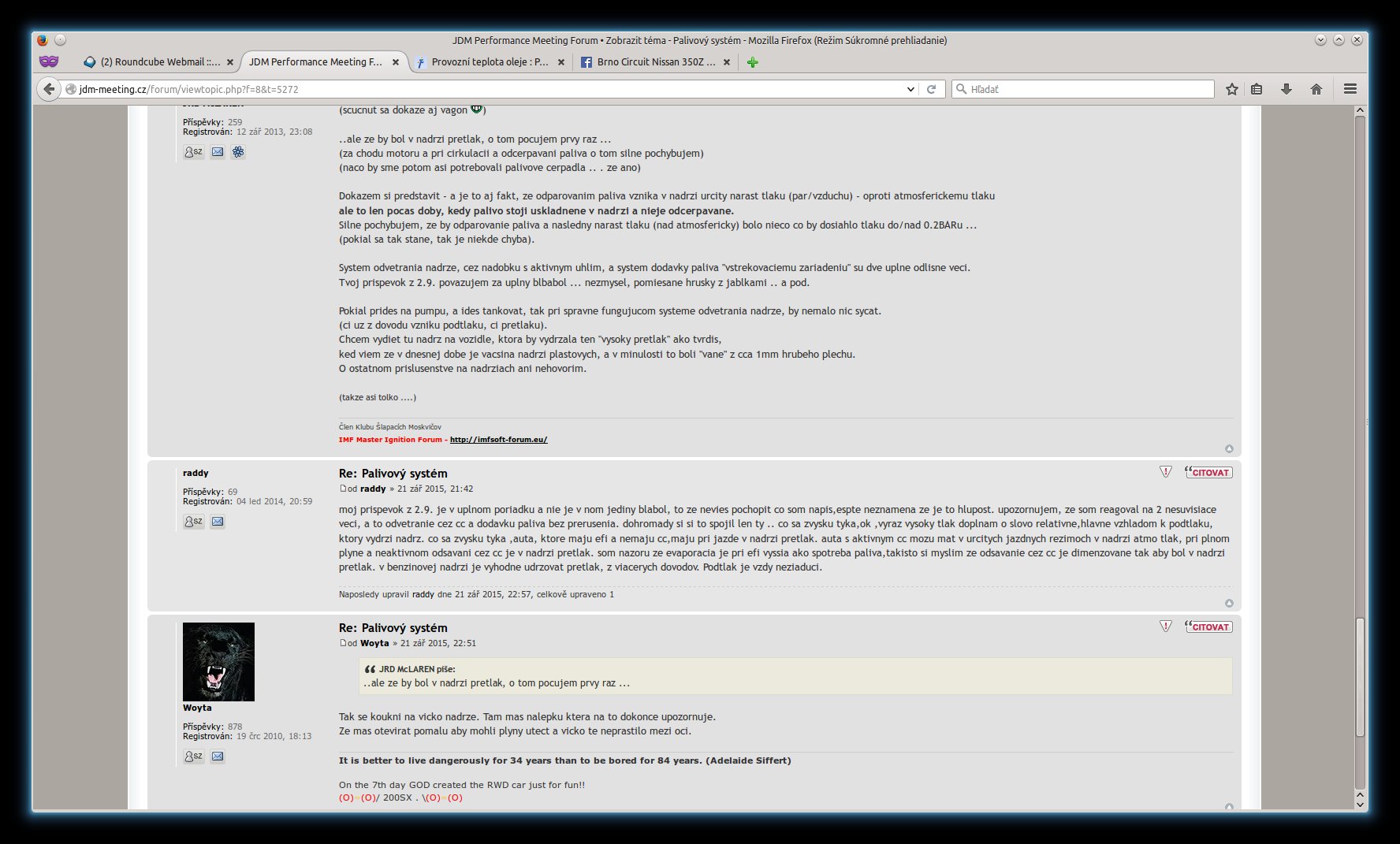 Tu (na JDM fore) sme ale "zabrdli" do palivoveho sytemu a odvetrania nadrze "u bezneho moderneho cestneho vozu". Nehovoriac o tom, ze autor temy sa pytal na nieco uplne ine.