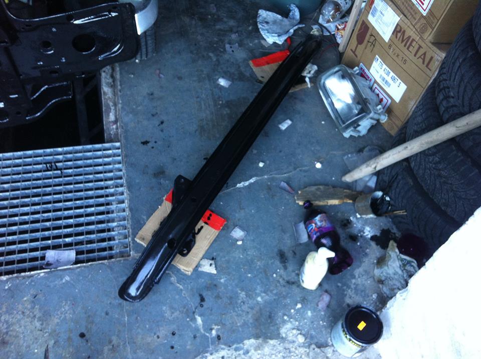 Vzpěra mezi tlumiče šla taky do barvy ..... dále se jen zapojovala elektrika ...