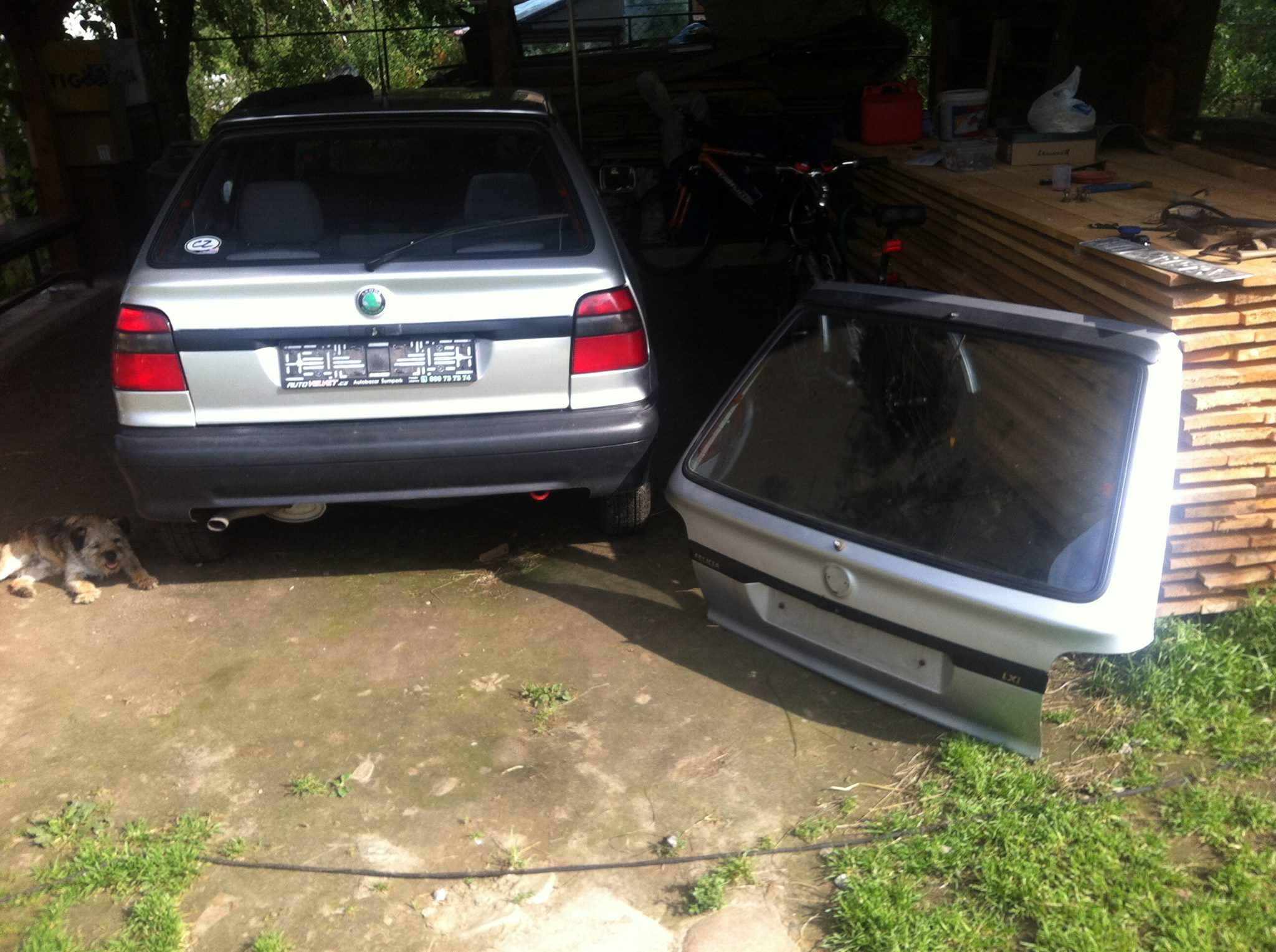 tak koupe nových elektronů original škoda R14 a týden na to koupené kola Diewe Wheels R15 .... a rovnou i fotka s blinkry ...