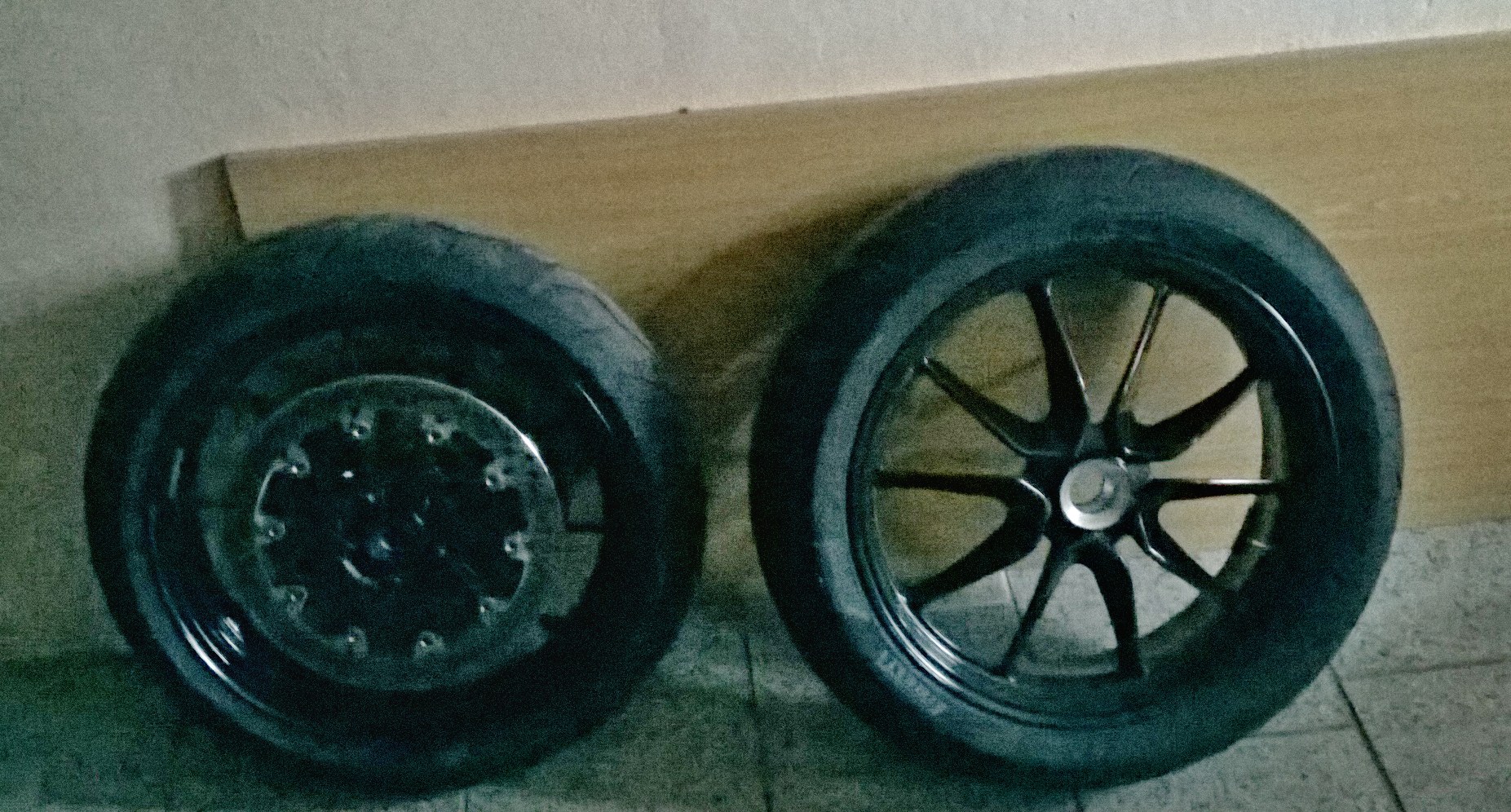 Děkuji. Chtěl jsem něco co si můžu udělat doma a přitom aby to mělo nějakou úroveň. Hodně se mi líbí kola na Superduke R a chtěl jsem taky něco takovýho aby se mi prostě při jízdě "míchaly" dvě barvy. Ale nechtěl jsem nic složitýho. Kola jsem teda nalakoval na bílo a navrhnul si samolepky a polepil to. Samozřejmě ty samolepky mi neseděli úplně přesně jak bych si představoval tak jsem musel na zadním kole hodně improvizovat protože jsem měl ty nálepky nakreslený jako bych je lepil na rovnou plochu což samozřejmě kulatý kolo není ale i přes to že se mi podařilo některé samolepky zničit a kolikrát jsou tam dost bídně ustřižený ty konce tak jsem s tím spokojenej. Za jízdy to snad bude vypadat dobře a z blízka to snad nikdo zkoumat nebude :D