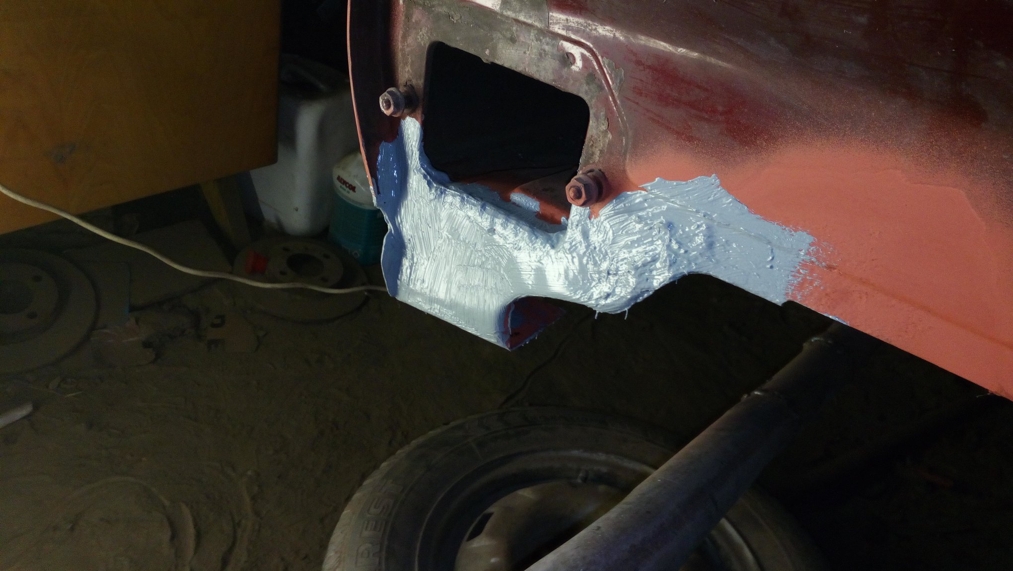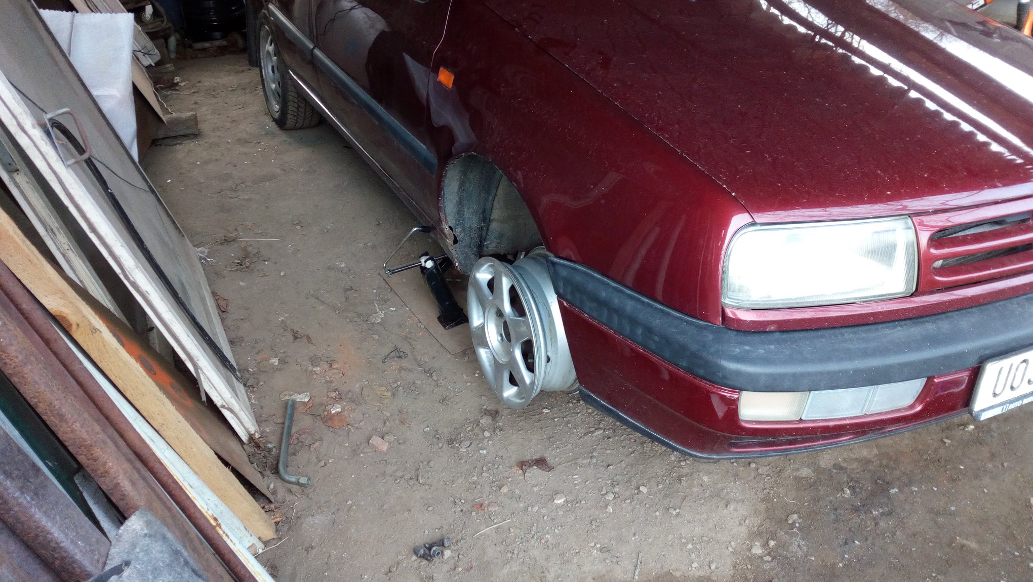 ještě jedna foto nápravnice, hned po stk začalo rozdělávání auta a zkouška nových kol