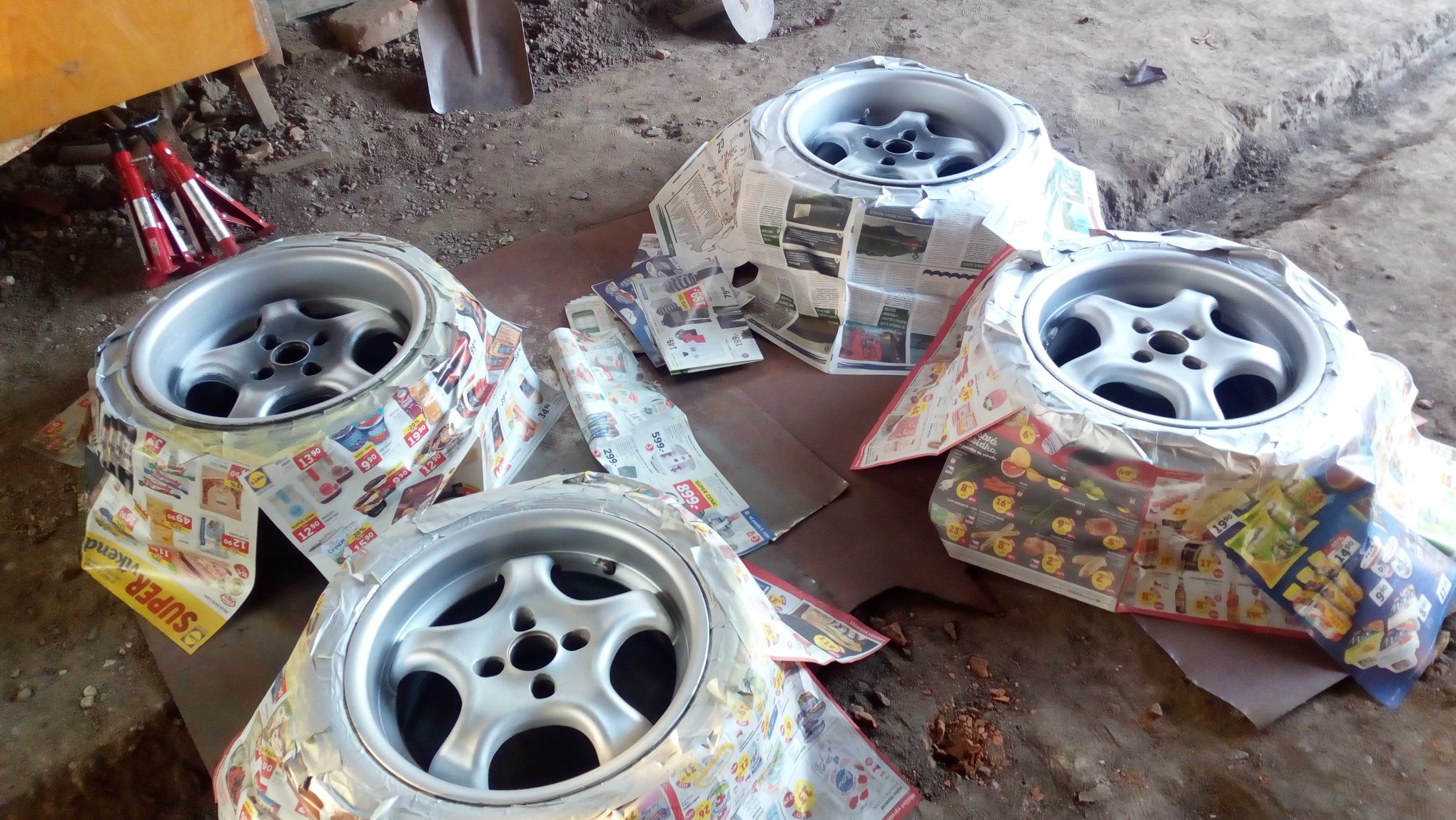 dvě barvy kol se mi nelíbily tak jsem začal kola brousit a šprcku z kapoty jsem sundal