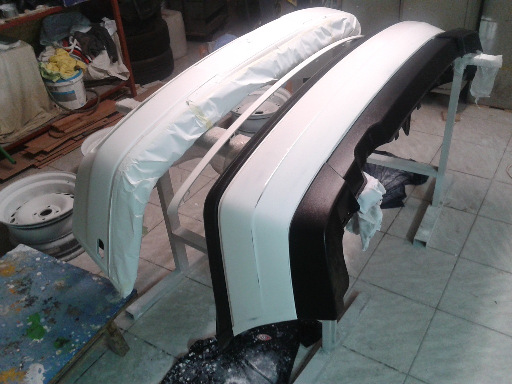 ) tak aspoň nějaká fotka. Auto už je v plniči a ještě trochu broušení a jde do lakovny a mezitím jsem naplničoval nárazníky. Radost dělat ze strukturovaného nárazníku nárazník pro částečný lak