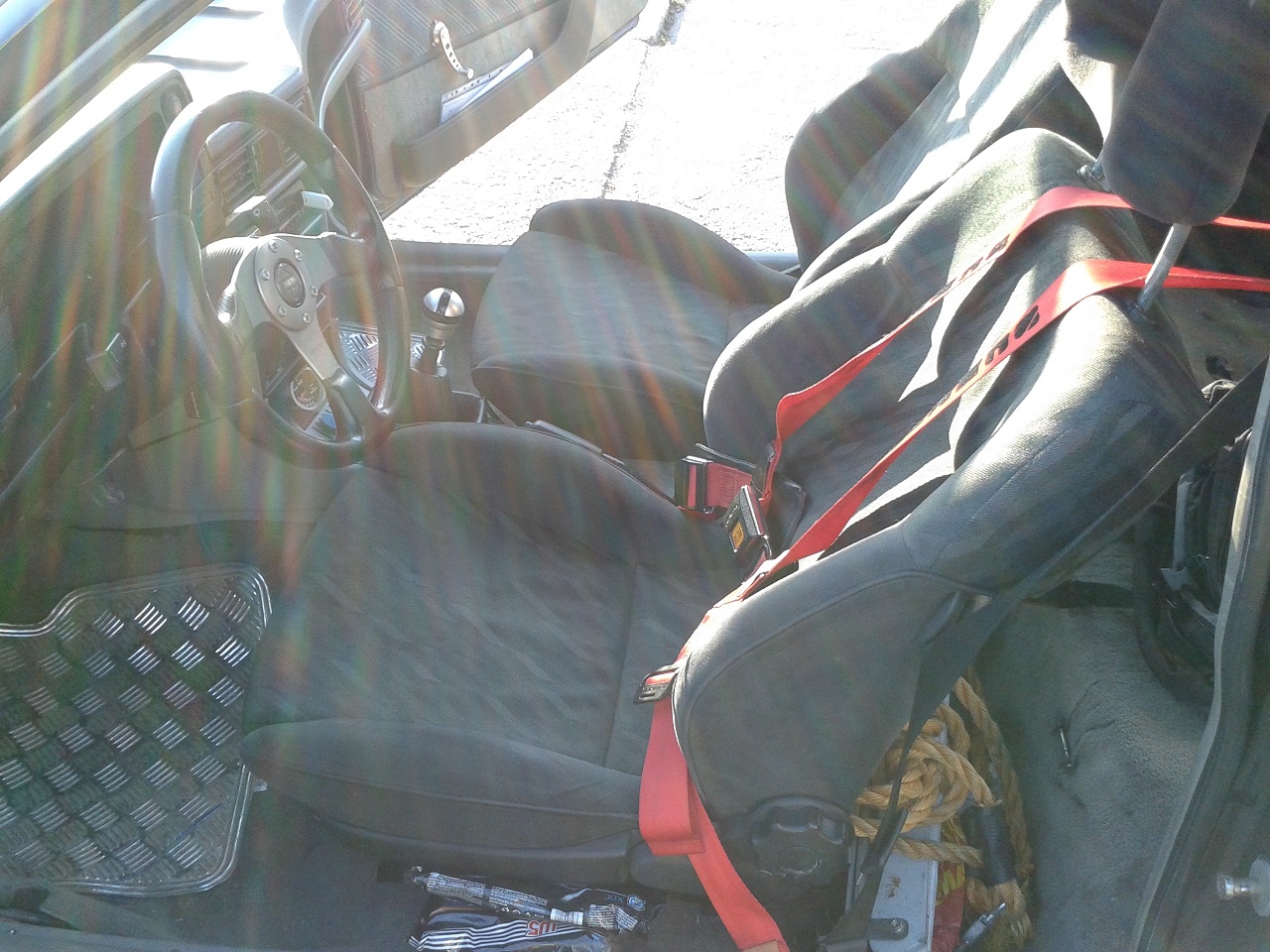 (nadsázka, miluju ten motor, výkonu habaděj, rozhodně to byla poslední věc na autě na kterou bych si tam stěžoval, ani teď jsem potenciálu nevyužíval na 100% - první závody)...kdybych jen nebyl línej koupit kloudný gumy, na starých fuldách to ujde