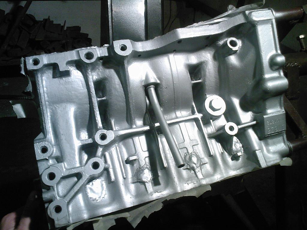 Jelikož sem musel kvuli jedný chybce při kompletaci, vyndat znovu písty a ojnice, tak sem toho využil, a trochu sem posychroval přední část bloku, která byla od něčeho nažraná. Není to sice úplnej zázrak, ale rozhodně to vypadá líp než před tím