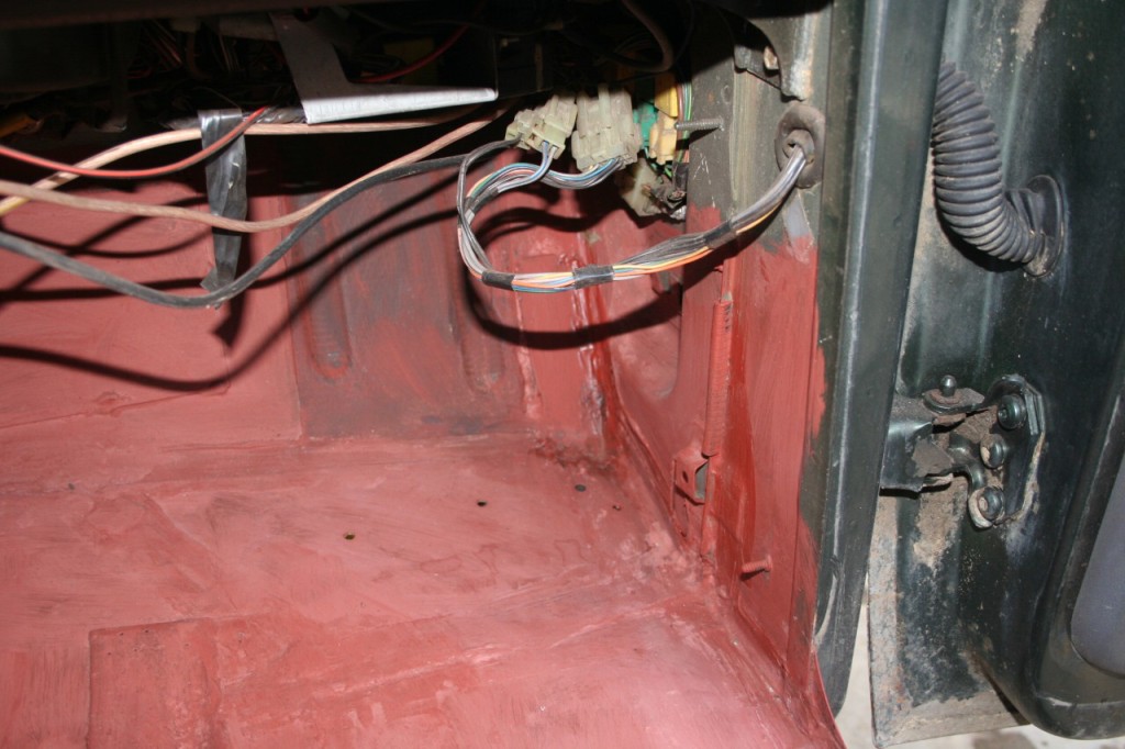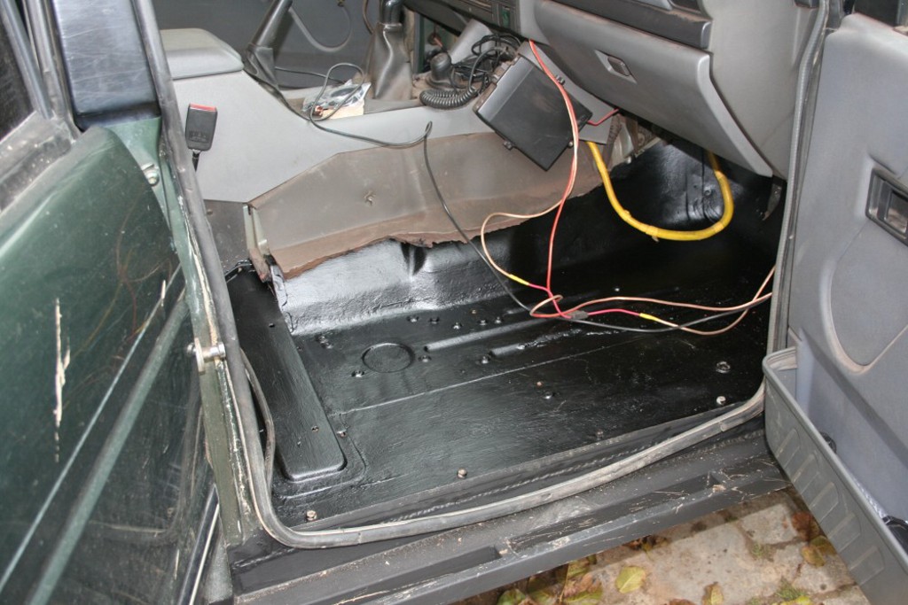 tam, kde je to varene je to zadelane pur tmelem, pak dvakrat zakladovka a na to 2x ten asfaltovy nater, protoze v tom aute je vecne voda, na ten asfaltovy nater prijde odhlucneni co tam je (takova penovka) a pak teprve koberec