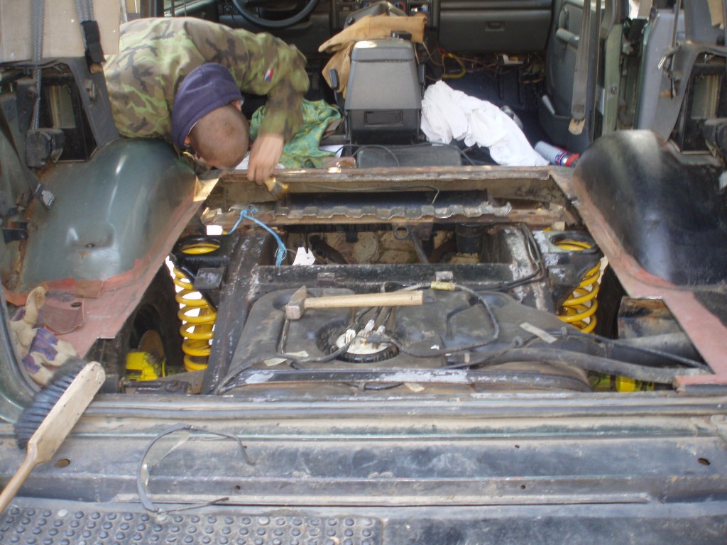 tak auto slozene, jeste nanytovane picaplechy na spodky dveri, namontovany odpojovac navijaku, dvere natrene zevntr gumoasfaltem, namontovany kryt spojovacky, udelany velky servis(gufera, loziska, oleje) a spousta dalsich no a jenom sem to dodelal tak co?