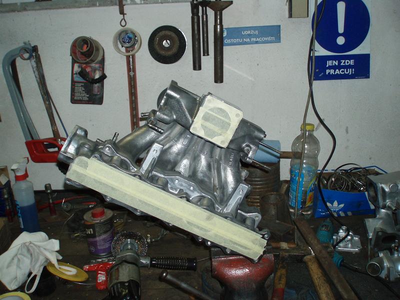 po tom co sem vypucoval sání sem si vzpoměl na jeden zapomenuty kousek na poličce a rozhodl se že ho použiju, předchozí sání tu na fotkách je tak upnu jen to "nové", použil jsem seriovou CA18DET klapku a zaportoval ji na tohle sani ktere puvodně používá klapku menší, dále jsem osadil menší kladku na lanko, cele to očistil vypucoval atd... viz foto.