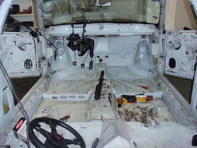 Ve volné chvíly probíhá kompletní odstrojování karoserie a příprava prostoru pro budoucí V8. Je no to času míň než se předpokládalo