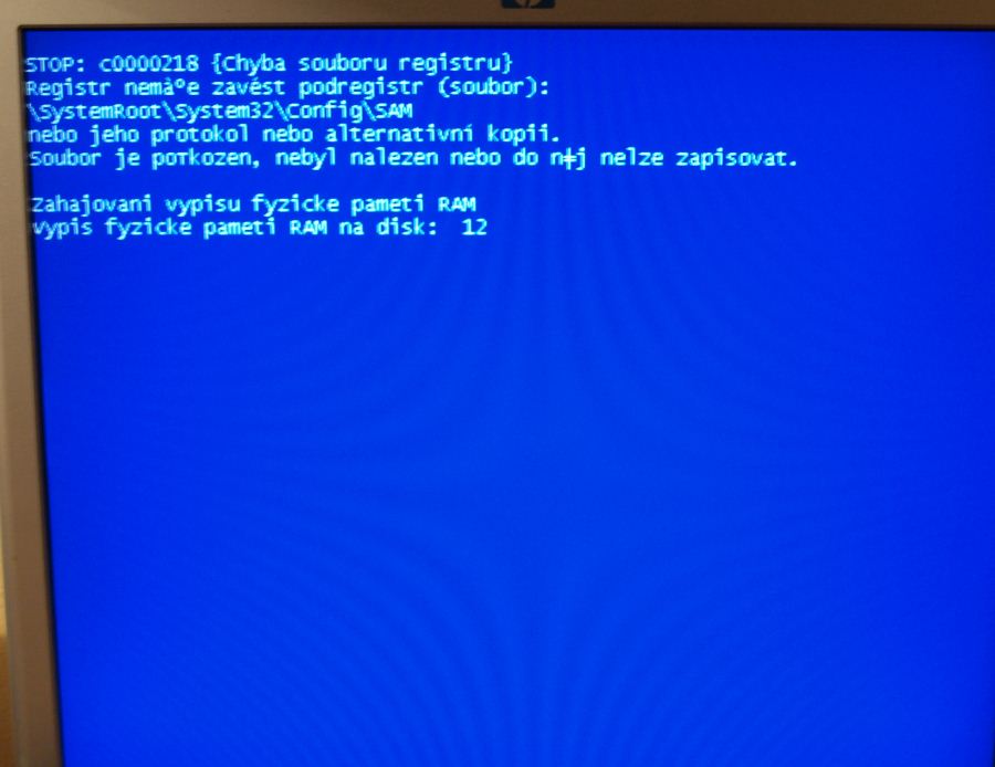 Tím pádem po vypršení času učiní Win pokus se spustit. Proběhne první loading obr.(XP), pak naskočí toto: