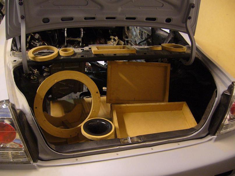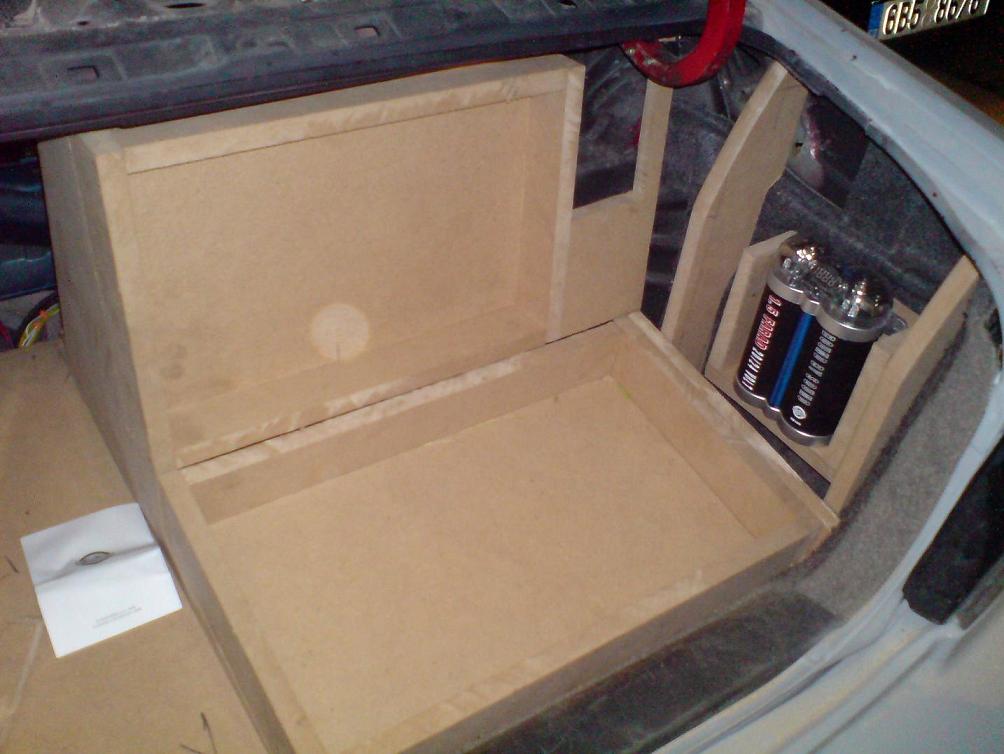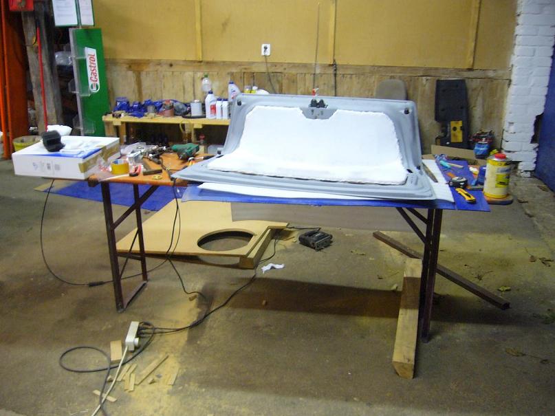 kaplicka pro budiky na sloupek u ridice a temer finalni rozmisteni zastavby v kufru...