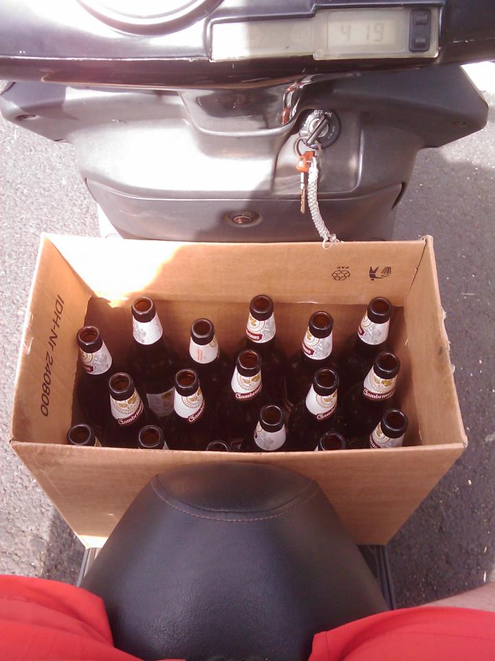 .. ale celou sestku 1,5 litrovych petek, na tomhle, mezi nohama neodvezes.