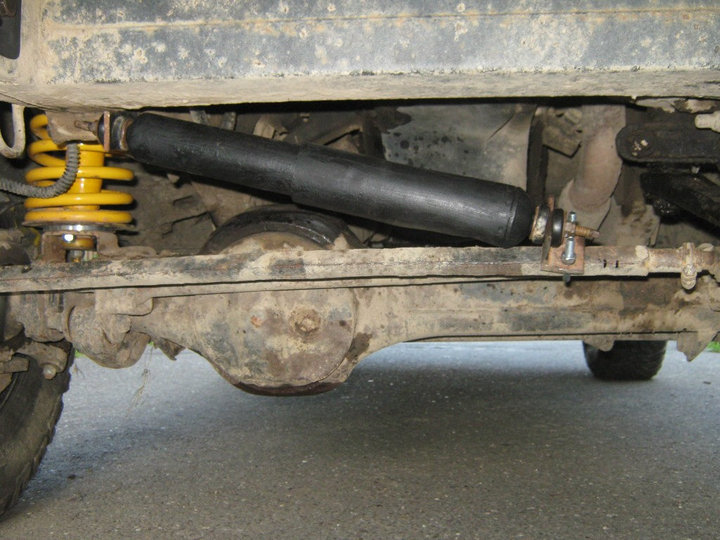 tlumi vibrace do rizeni, on je na spojovacce, ktera je za napravou dole a spojuje leve a prave kolo na tuhe naprave ale tam je dost na rane, tak jsem ho predelal na predni tyc ktera spojuje prave kolo a prevodku rizeni tam neni tak na raneJonnY píše:hele, aku funkciu ma ten tlmic medzi pevnou napravou a kasnou ?