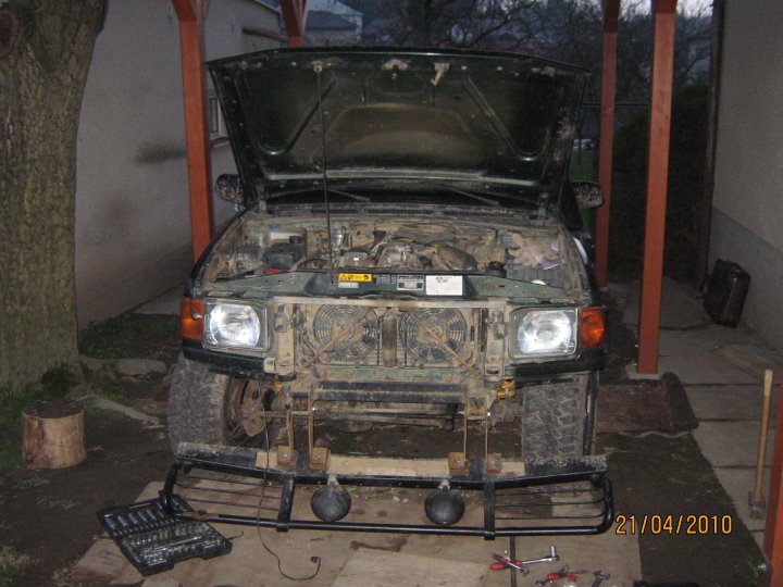 Podvozek: nove pruziny a tlumice +5cm, 2cm podlozky pod pruziny, 2,5cm bodylift(podložky mezi ramem a kastli) kola 265/75R16 na prevarenych discich ET presne nevim, kryty diferaku
